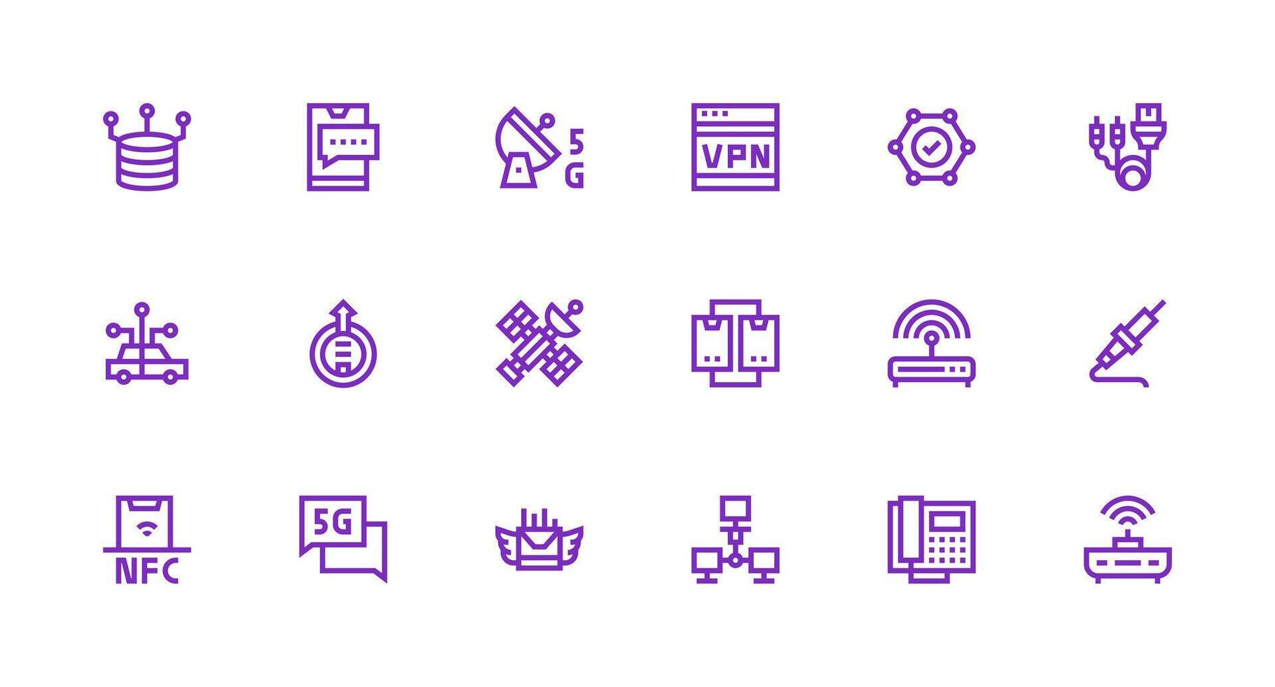 18 Data Transmission Icons in Strong Stroke Line Aesthetic Flexible Icon System for Web Interfaces vector
