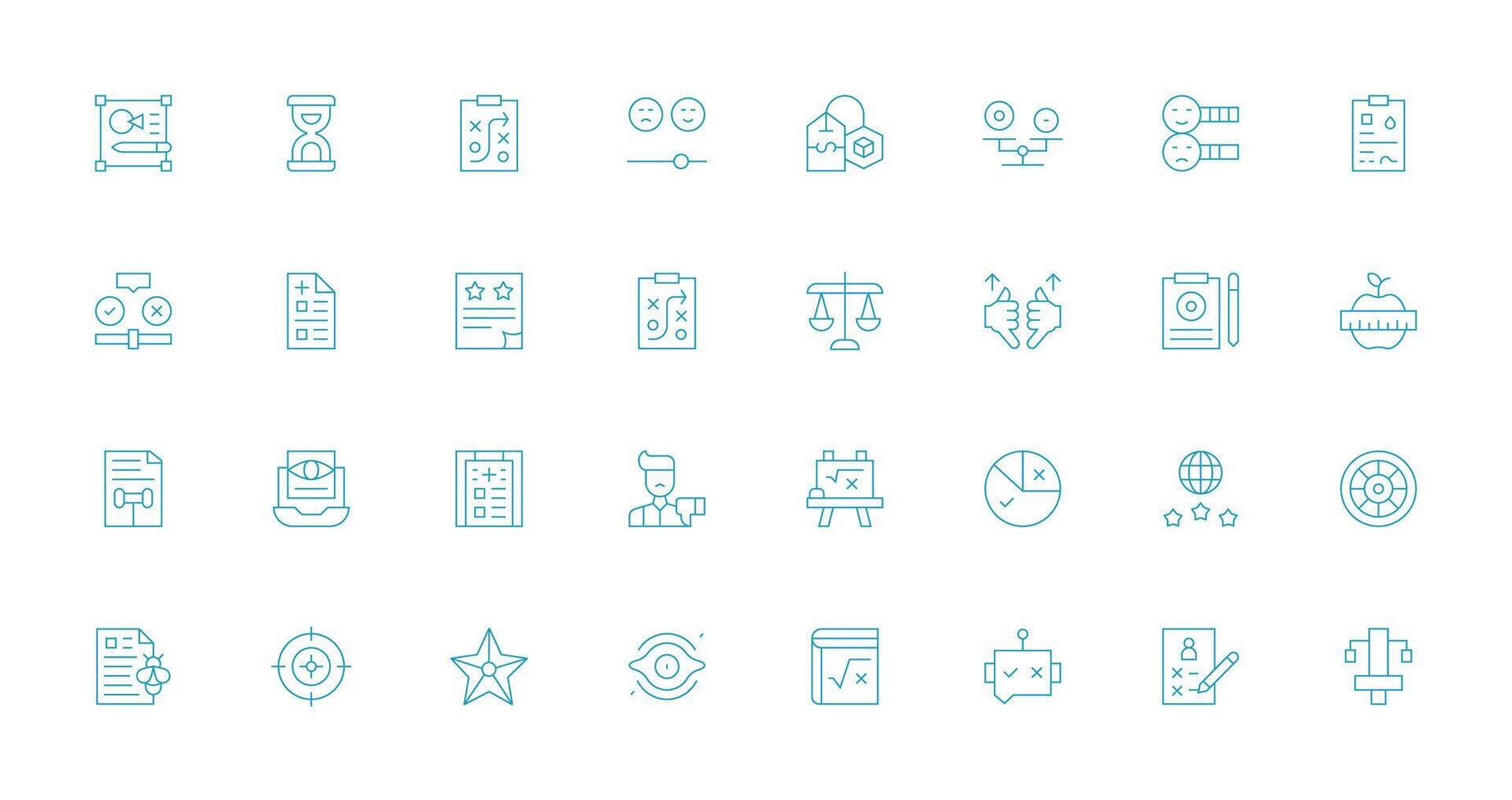 Assessment Design Icons featuring 32 in Thin Line Style Quick Access Icons for UI Development Free Vector