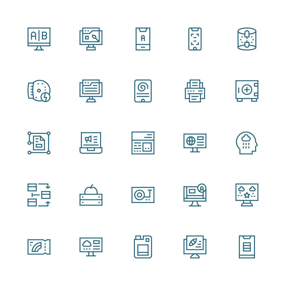 25 Icons for Information Technology in Medium Stroke Outline Format Full Icon Library for UI Designers vector