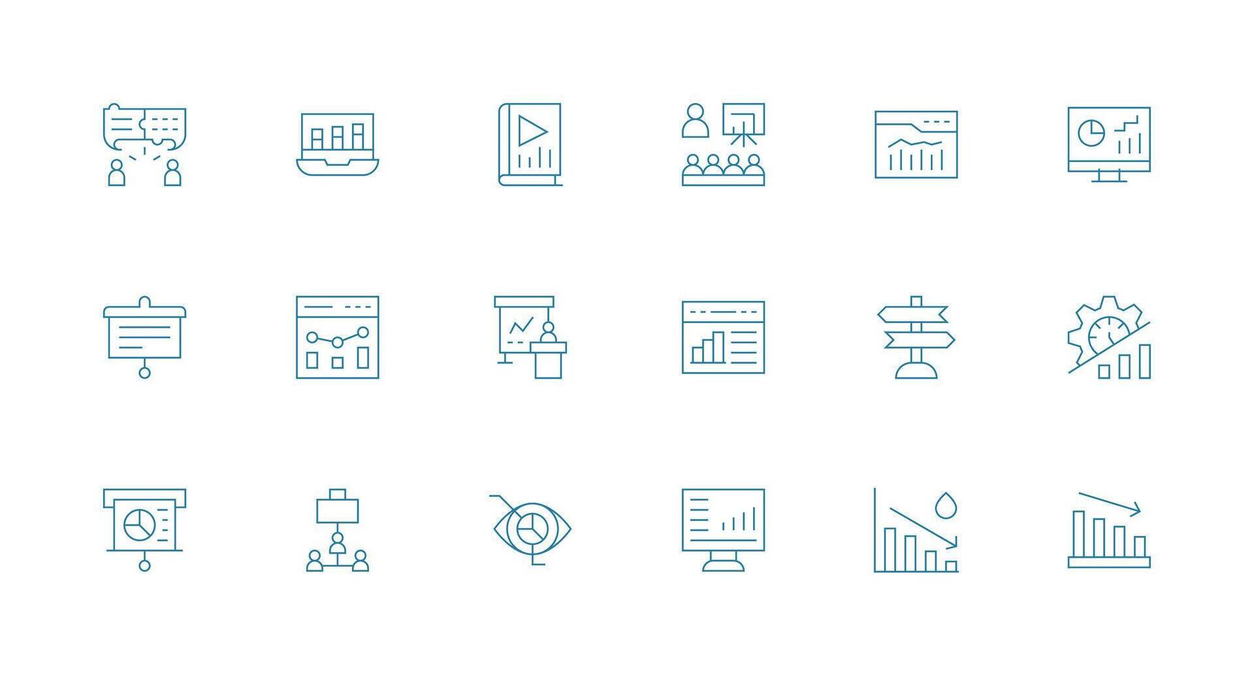 Charts Visual Pack containing 18 Minimal Line Icons Sharp Icons for Presentations Free Vector