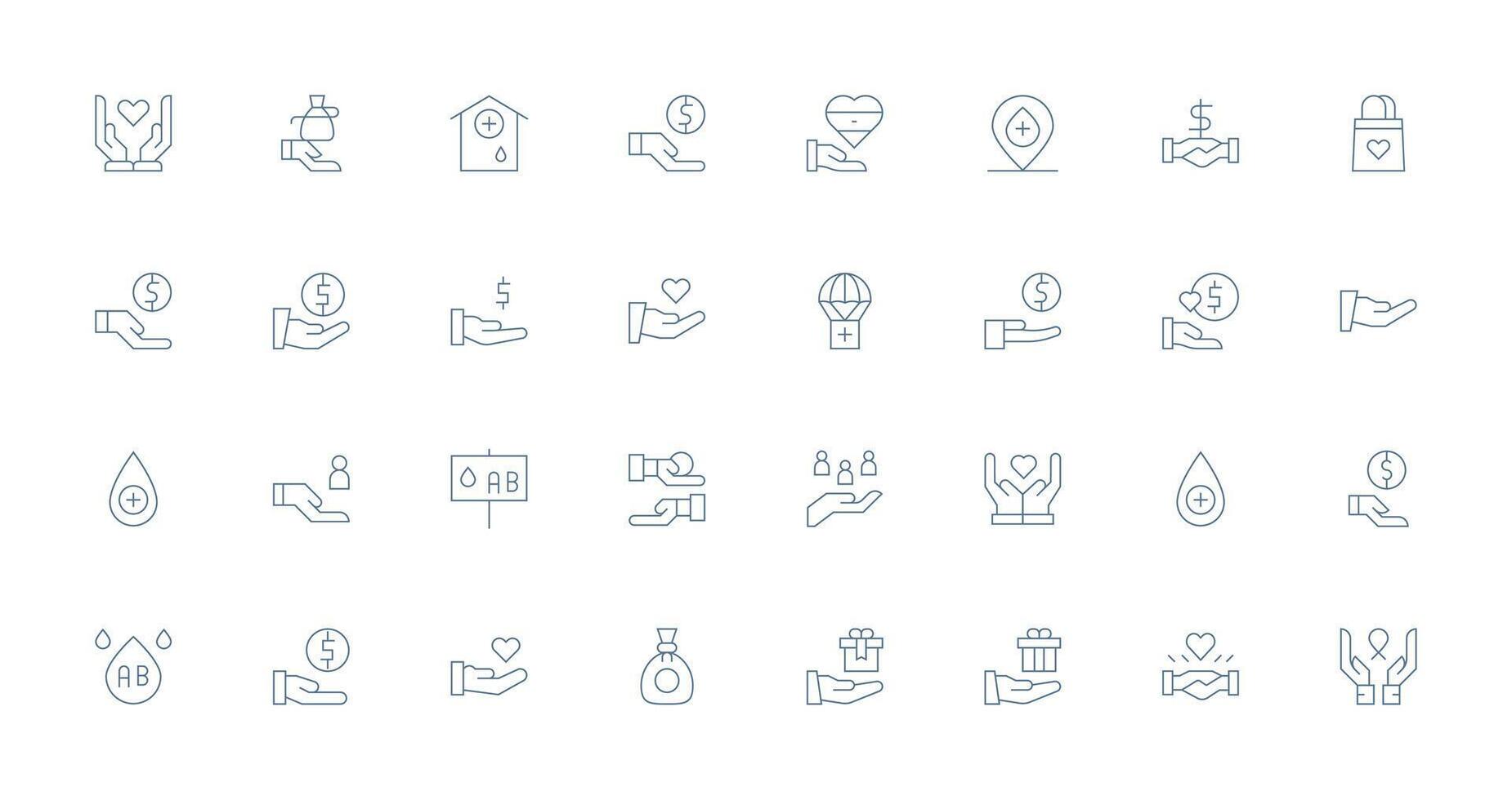 Donation Visual Pack containing 32 Thin Line Icons Complete Icon Bundle for Web Design Free Vector