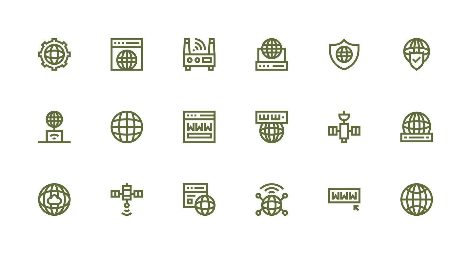 Strong Stroke Line Icons from Global Network Set with 18 Vectors Neutral Style Icons for Any Project