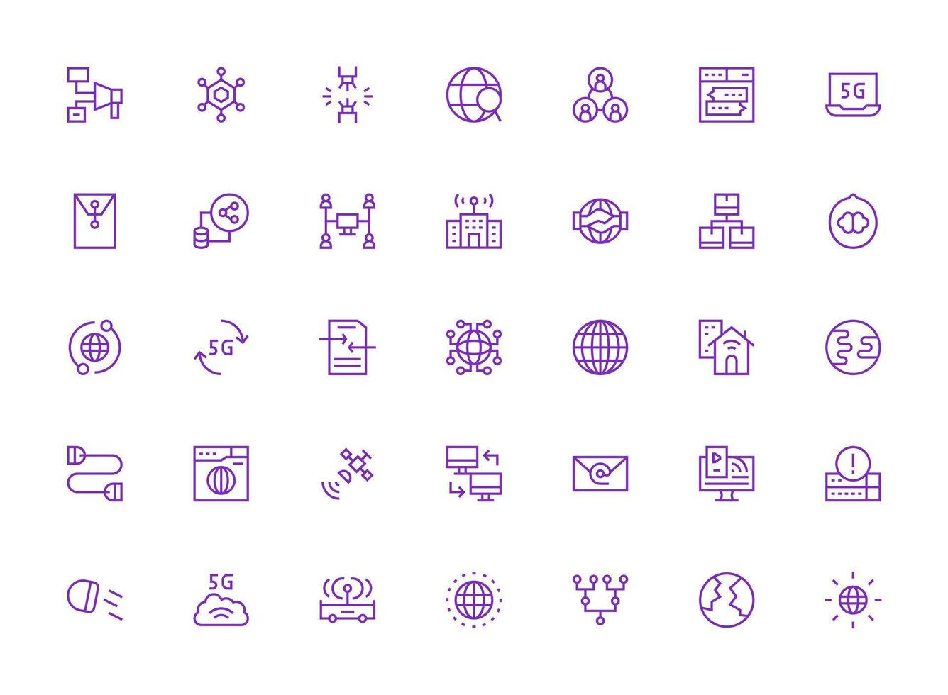 Network featuring 35 Icons in Regular Clean Line Design UI Icon Set vector