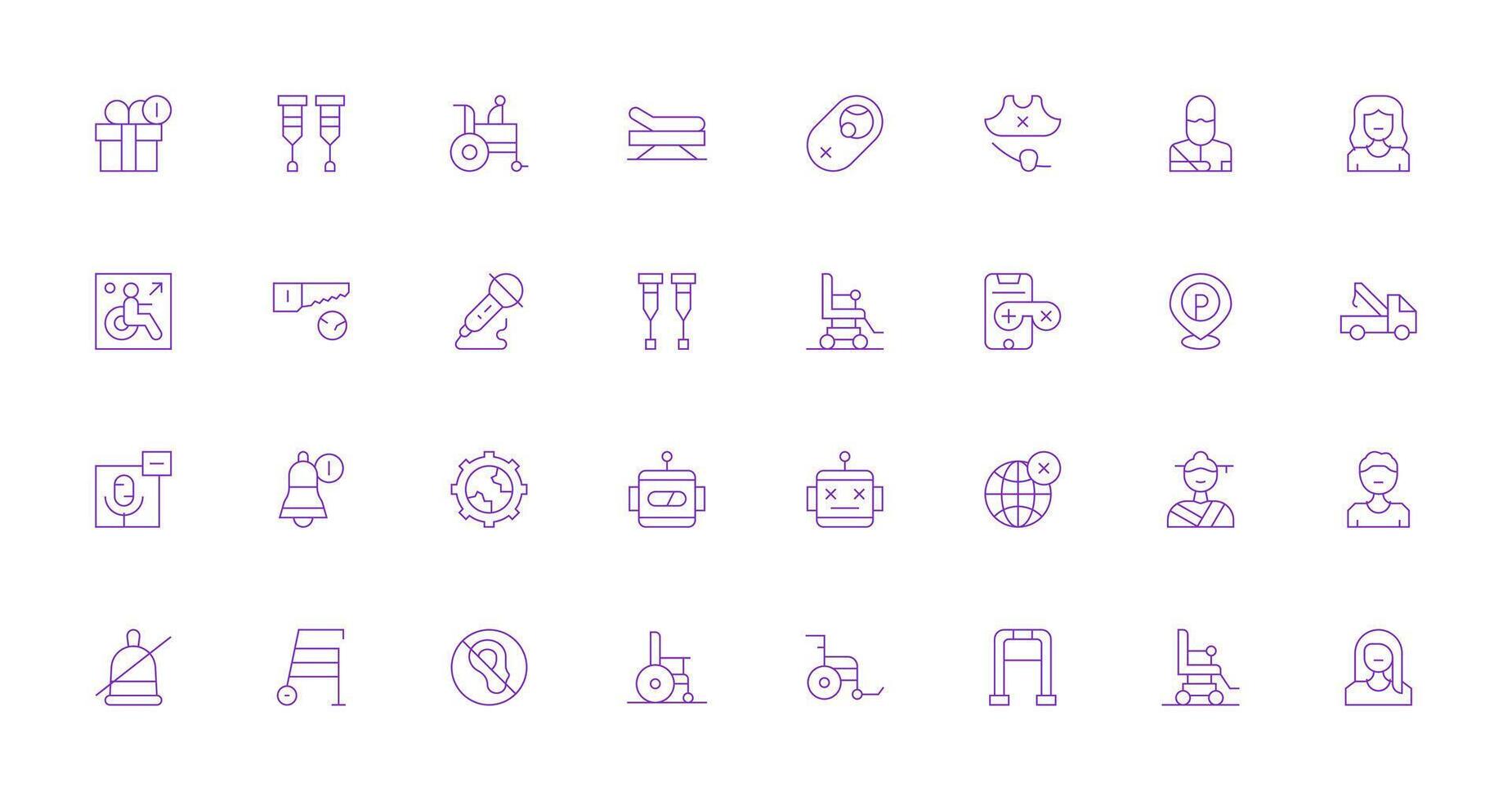 32 Icons for Disabled in Thin Line Format Multi-Style Icons for Creative Projects vector