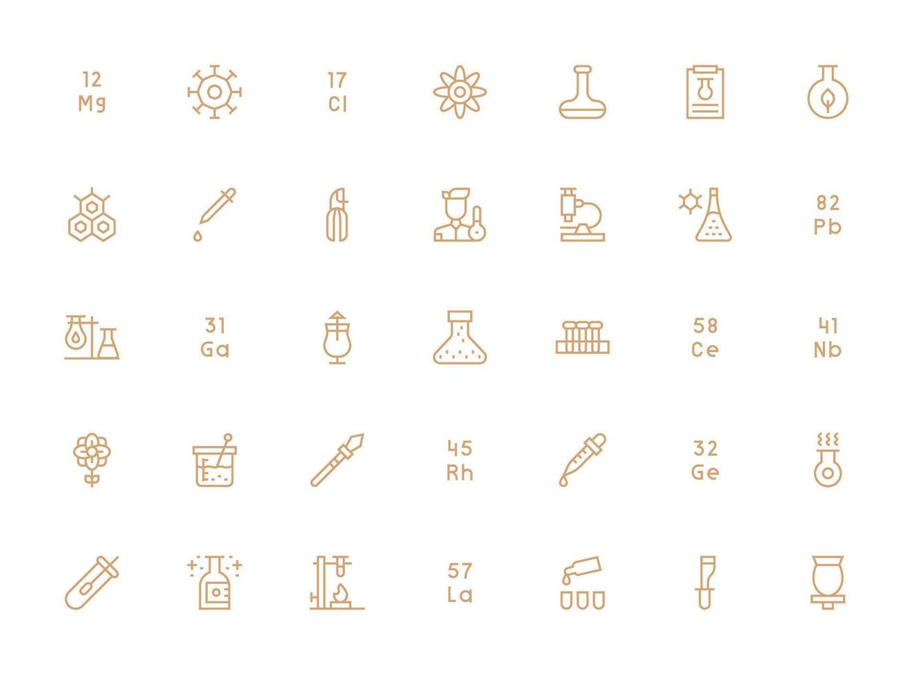 Chemistry Icon Set with 35 Regular Clean Line Graphics Web and App Icon Pack Collection Free Vector
