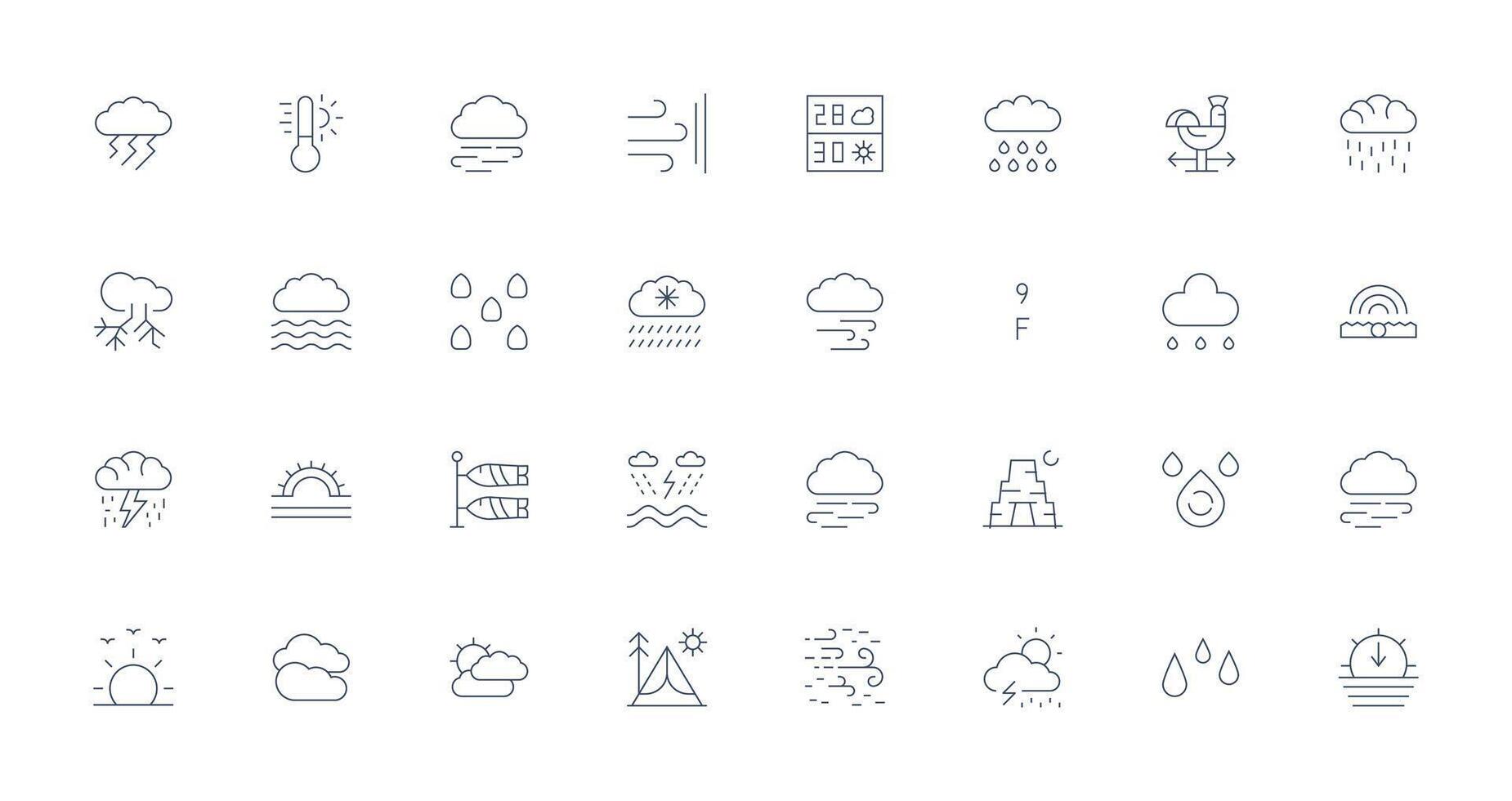 32 Thin Line Icons for Forecast Graphics Multi-Style Icon Collection Free Vector