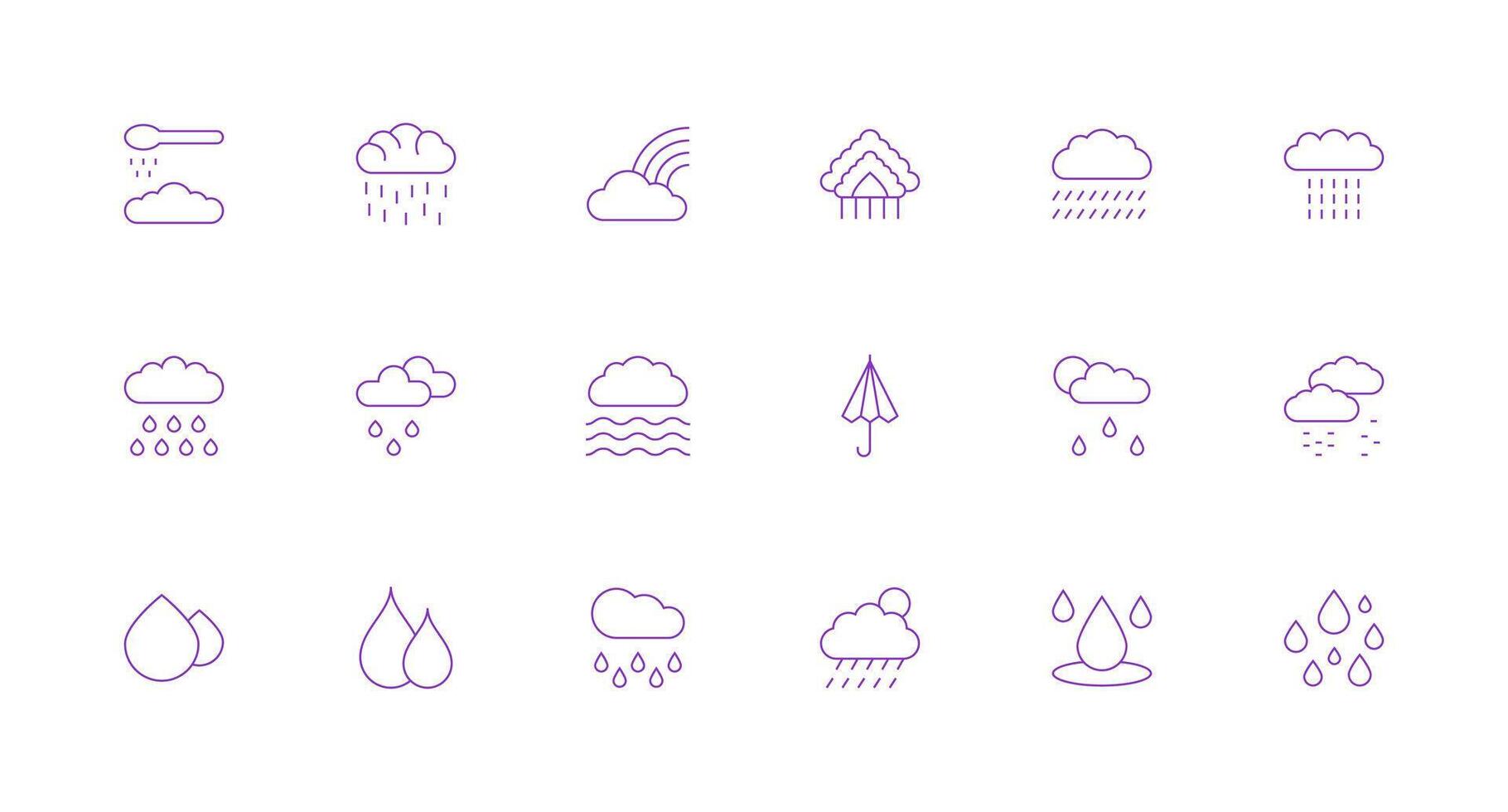 18 Icons for Drizzle in Minimal Line Format Icon Set for Projects vector