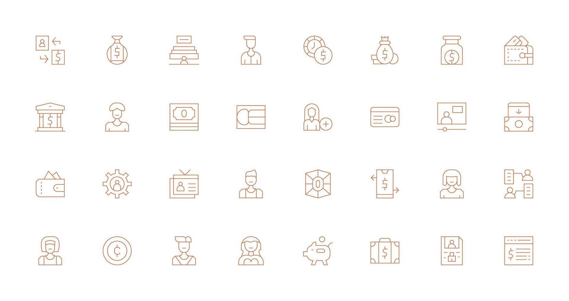 Account Icon Set with 32 Thin Line Graphics Interface Icon Collection for Daily Projects Free Vector