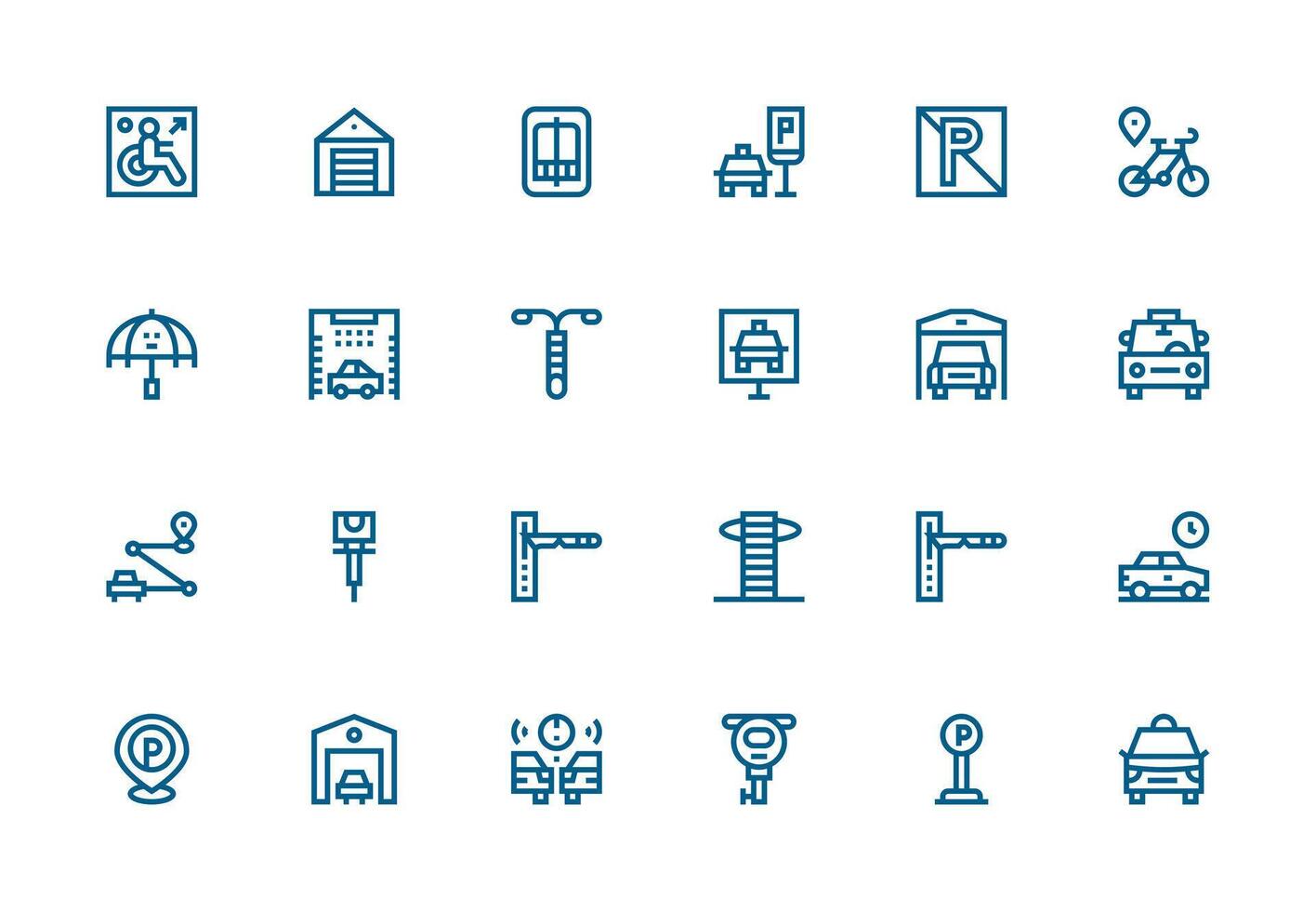 Parking Visual Pack containing 24 Thick Line Line Icons Flexible Icon System for Web Interfaces vector