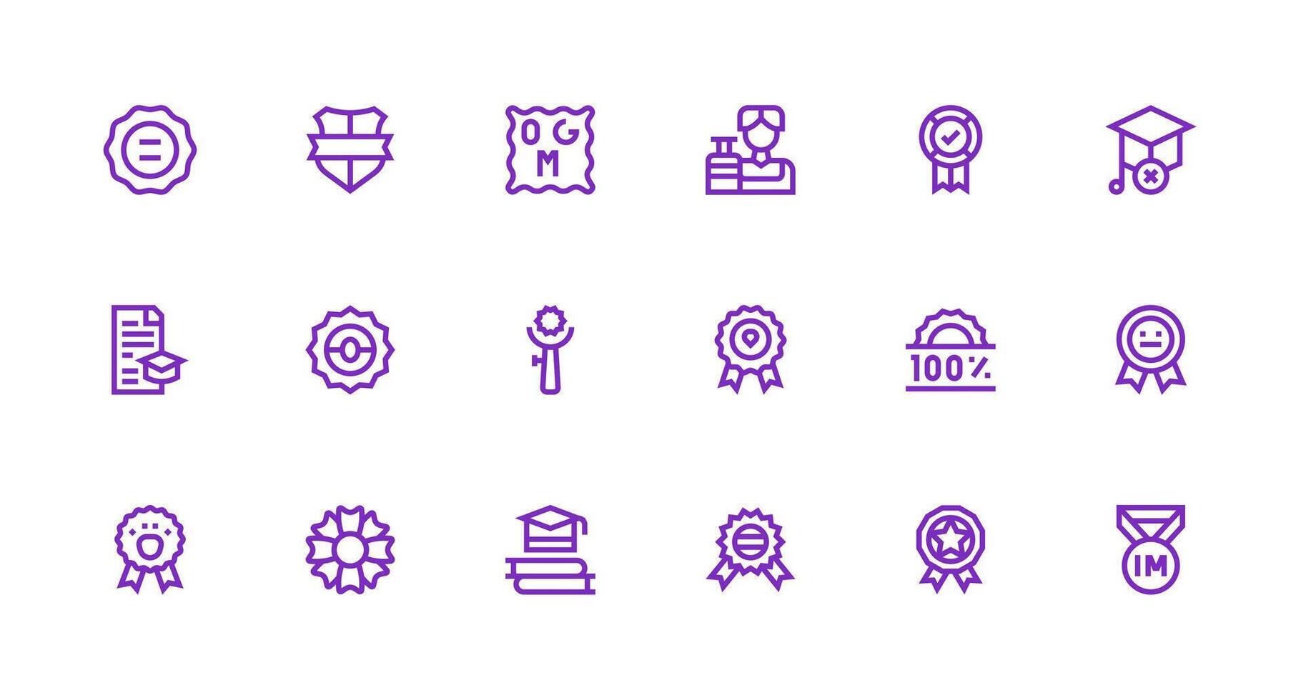 Certification Set with 18 Strong Stroke Line Icons Clean Icon Collection for Web Use Free Vector