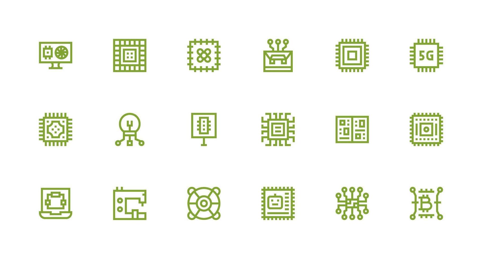 Processor Visual Pack containing 18 Strong Stroke Line Icons Multi-Style Icons for Creative Projects Free Vector