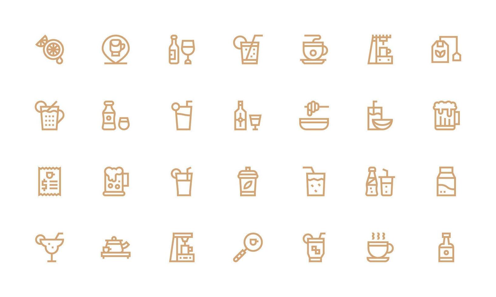 28 Icons for Drink in Bold Line Format Simplified Icon Pack for Visual Tools vector