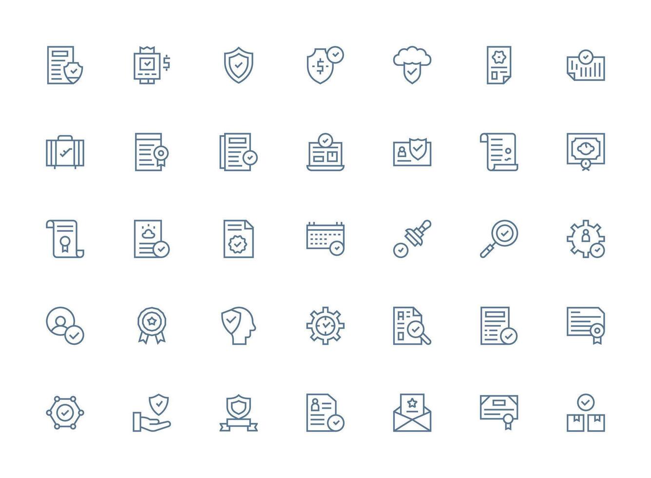 Validated Icon Set with 35 Regular Clean Line Graphics Icon Set for Web Free Vector