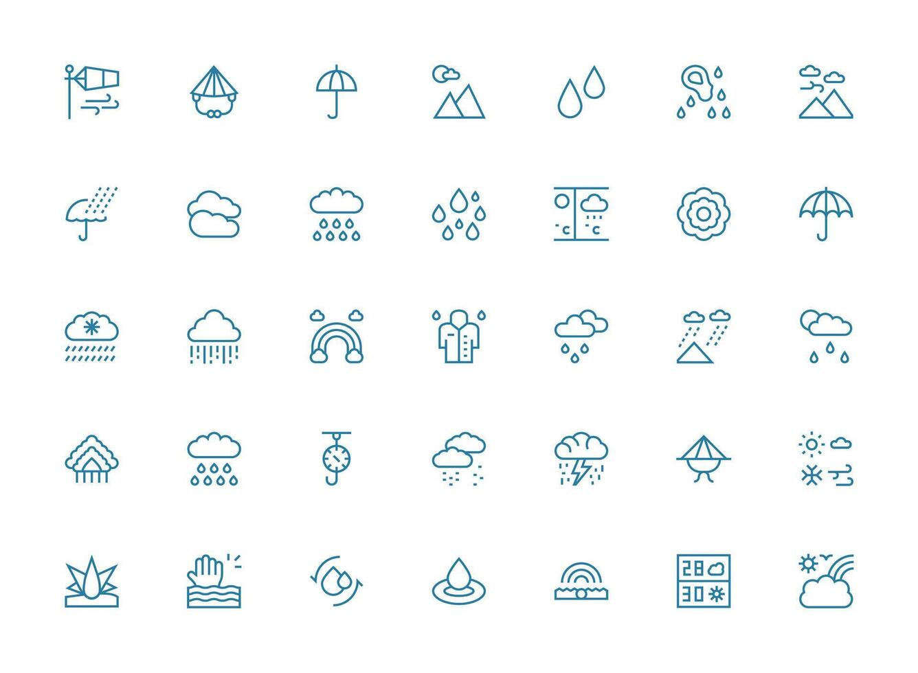 Regular Clean Line Icons from Rain Set with 35 Vectors Multi-Style Icon Collection Free Vector