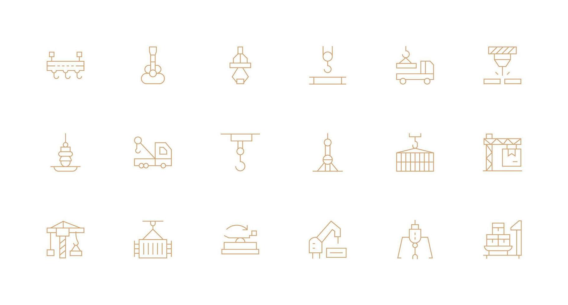 Crane Design Icons featuring 18 in Minimal Line Style Sharp Icons for Presentations vector