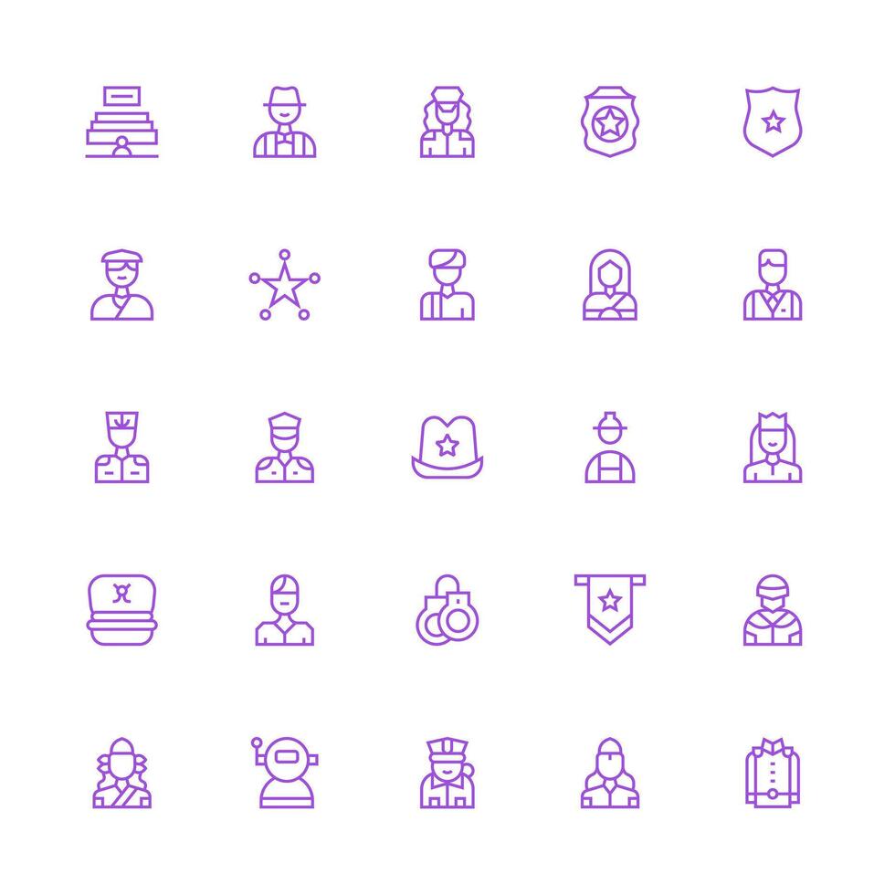 Officer featuring 25 Icons in Medium Stroke Outline Design Balanced Icon Set for Functional Design vector