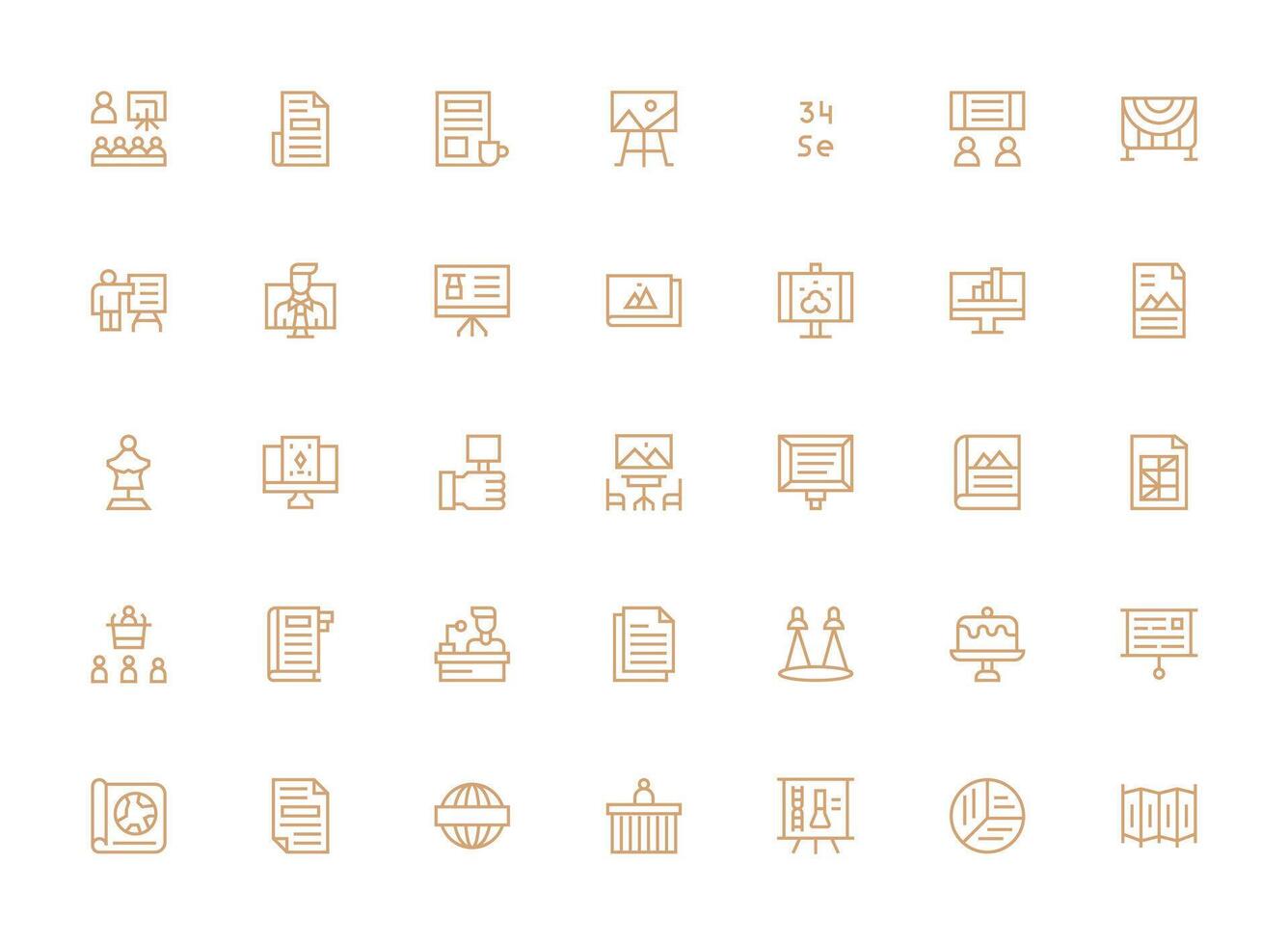Presentation featuring 35 Icons in Regular Clean Line Design General Use Icon Pack vector