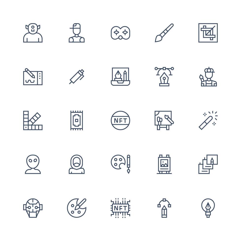 Medium Stroke Outline Icons from Digital Art Set with 25 Vectors Design Icon Pack Free Vector