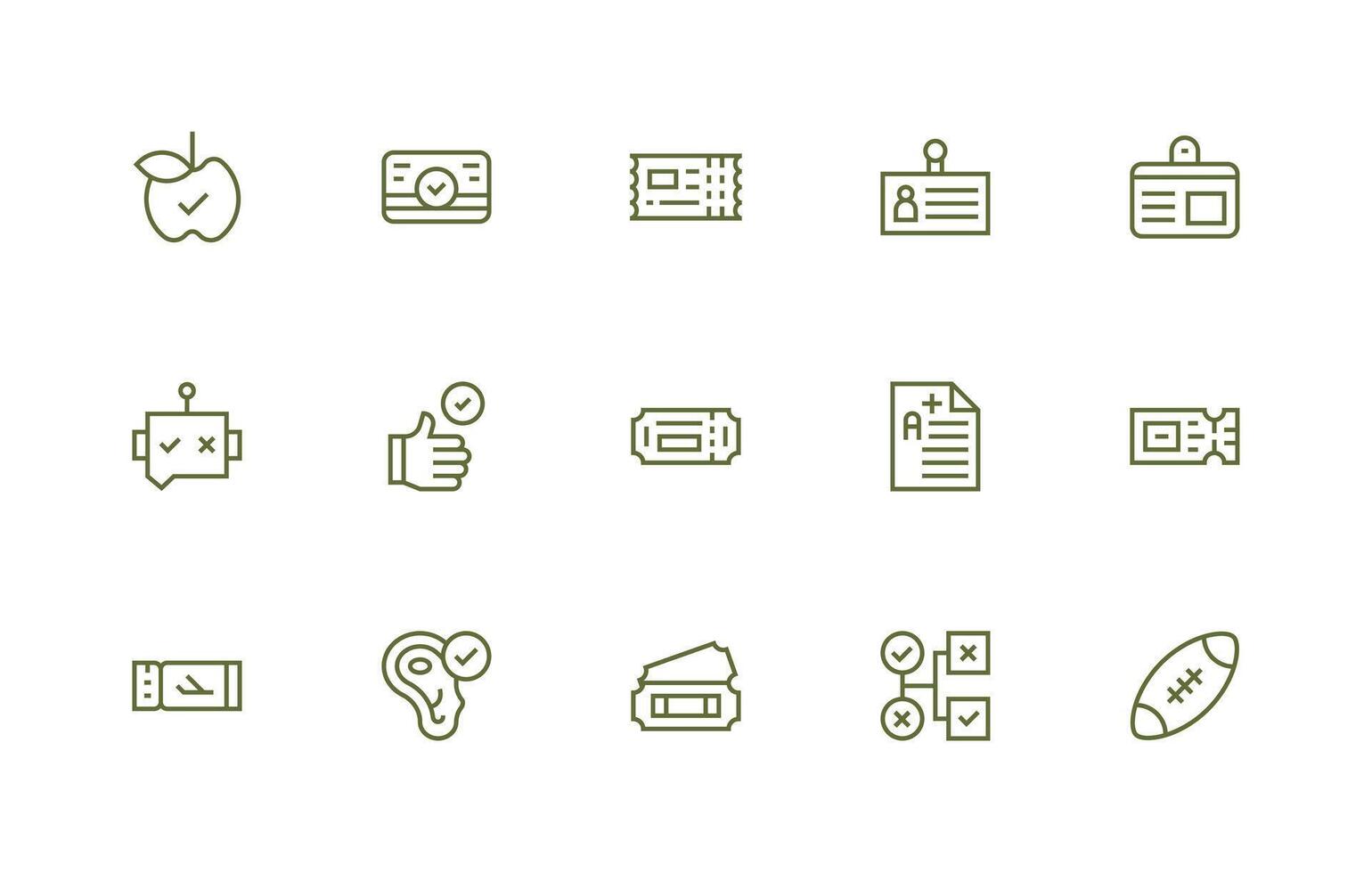 Pass Design Icons featuring 15 in Regular Line Style Complete Icon Set for Mobile Apps vector