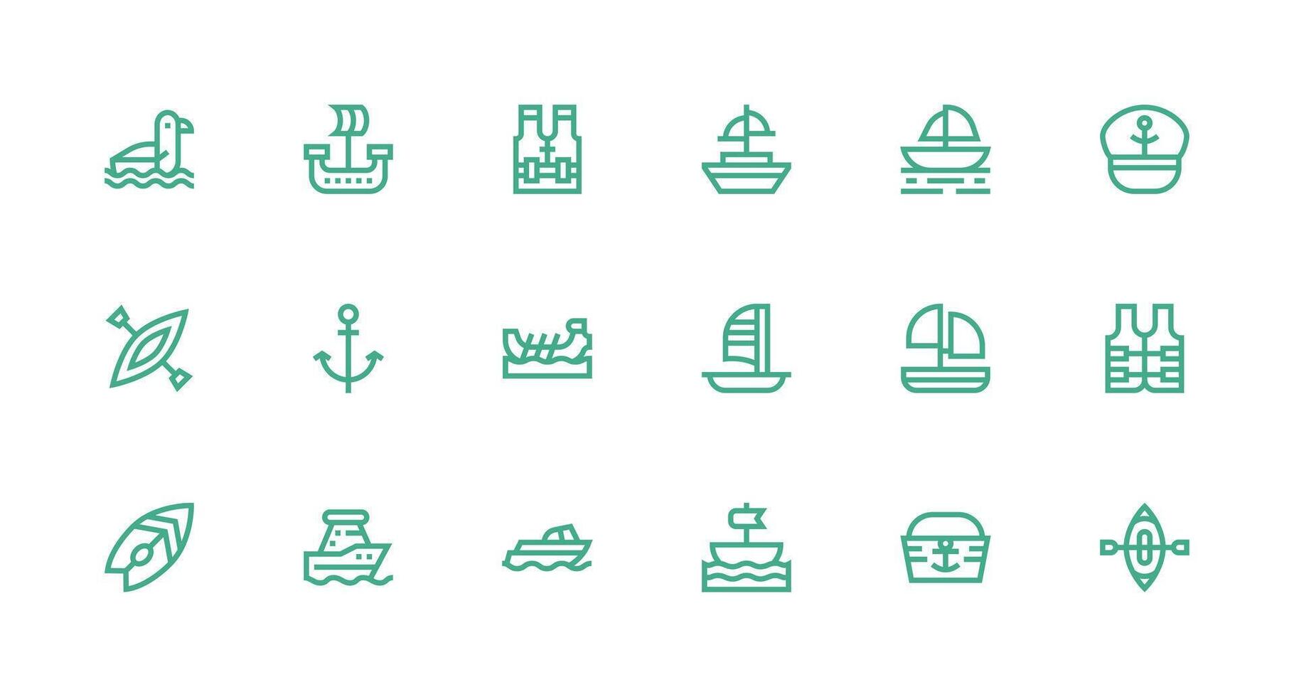 18 Strong Stroke Line Style Icons from Sailing Collection Complete Icon Set for Mobile Apps Free Vector