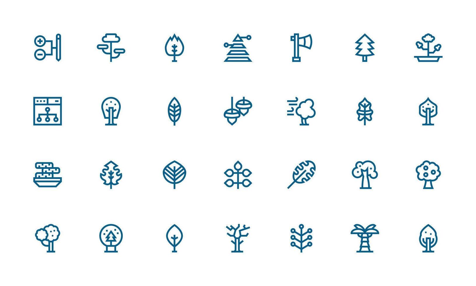 Tree Icon Set with 28 Bold Line Graphics Simplified Icon Pack for Visual Tools Free Vector