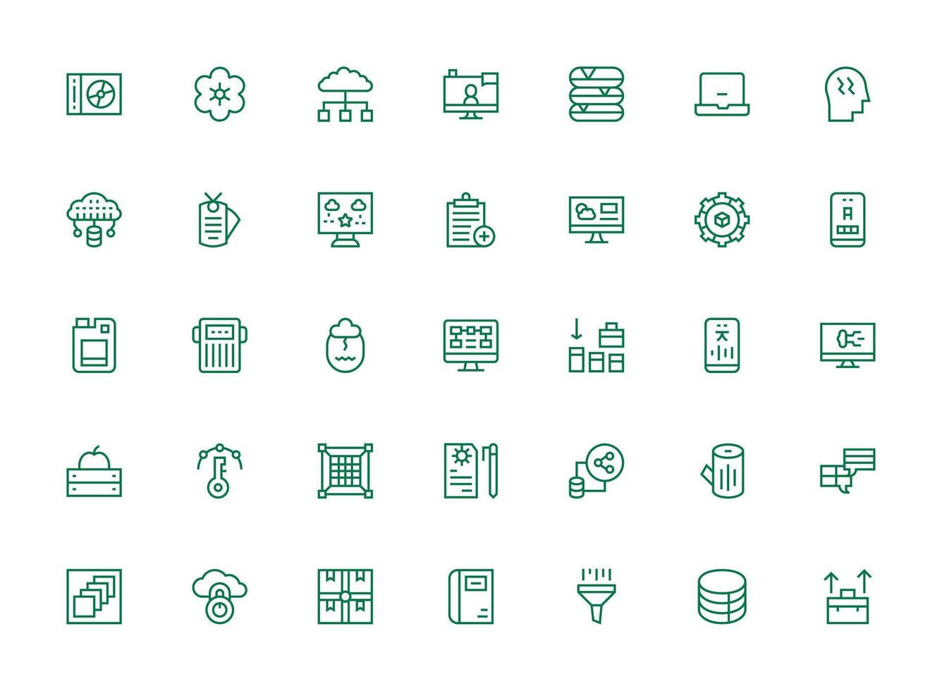 Regular Clean Line Style Data Management Icons with 35 Vectors Multi-Style Icons for Creative Projects