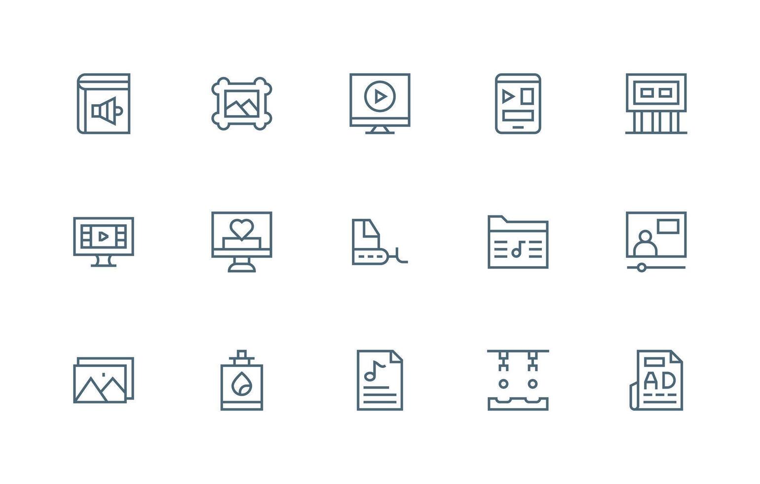 Regular Line Icons from Media Set with 15 Vectors Sharp Icons for Presentations Free Vector