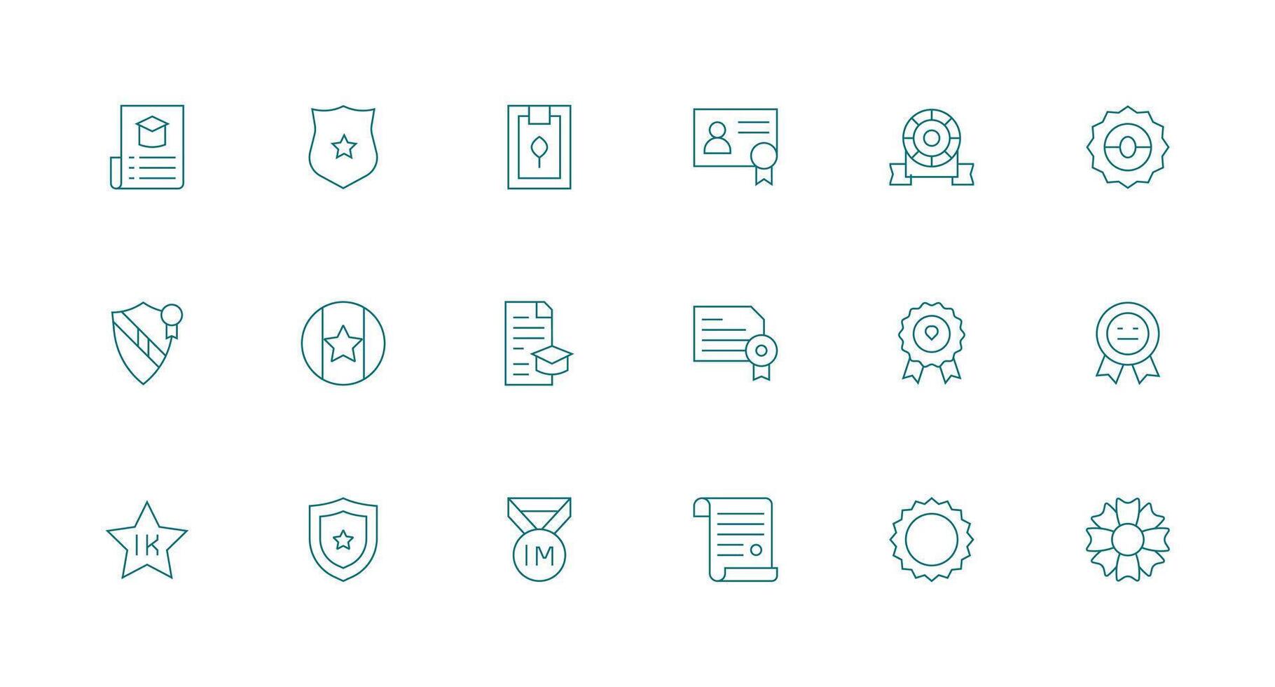 Certification Icon Set with 18 Minimal Line Graphics Flexible Icon System for Web Interfaces Free Vector
