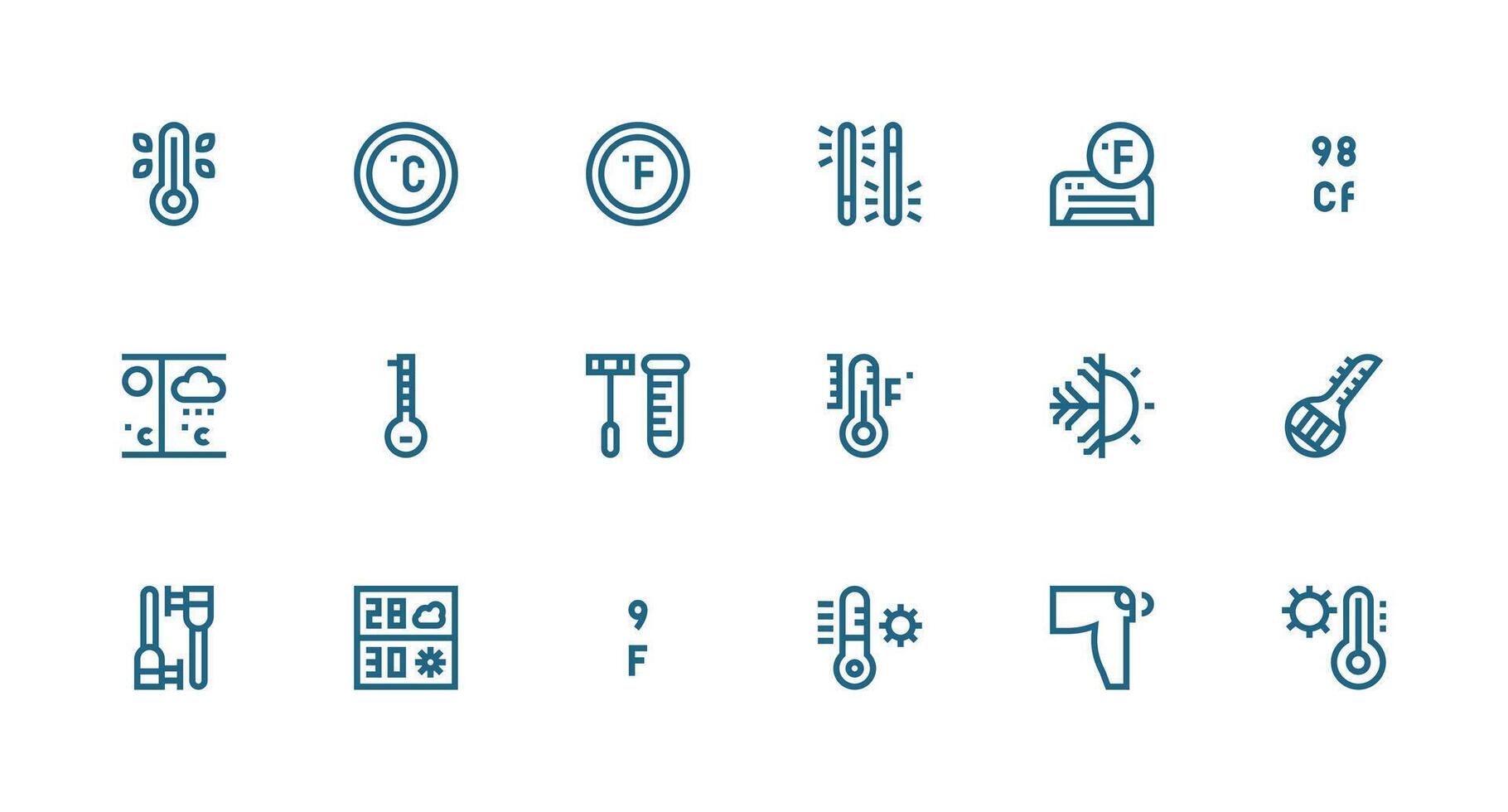 Fahrenheit Design Icons featuring 18 in Strong Stroke Line Style Clean Icon Collection for Web Use vector