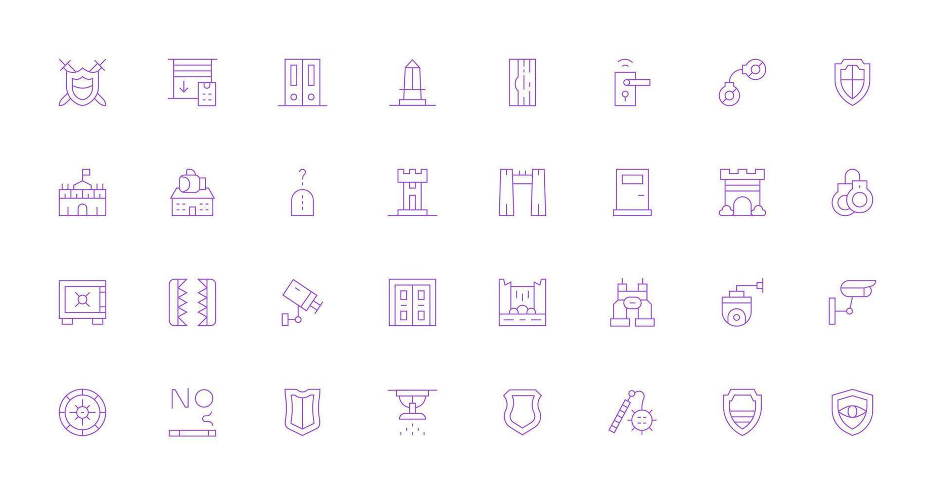 Security System Icon Set with 32 Thin Line Graphics Core Icon Collection for Daily Tasks Free Vector
