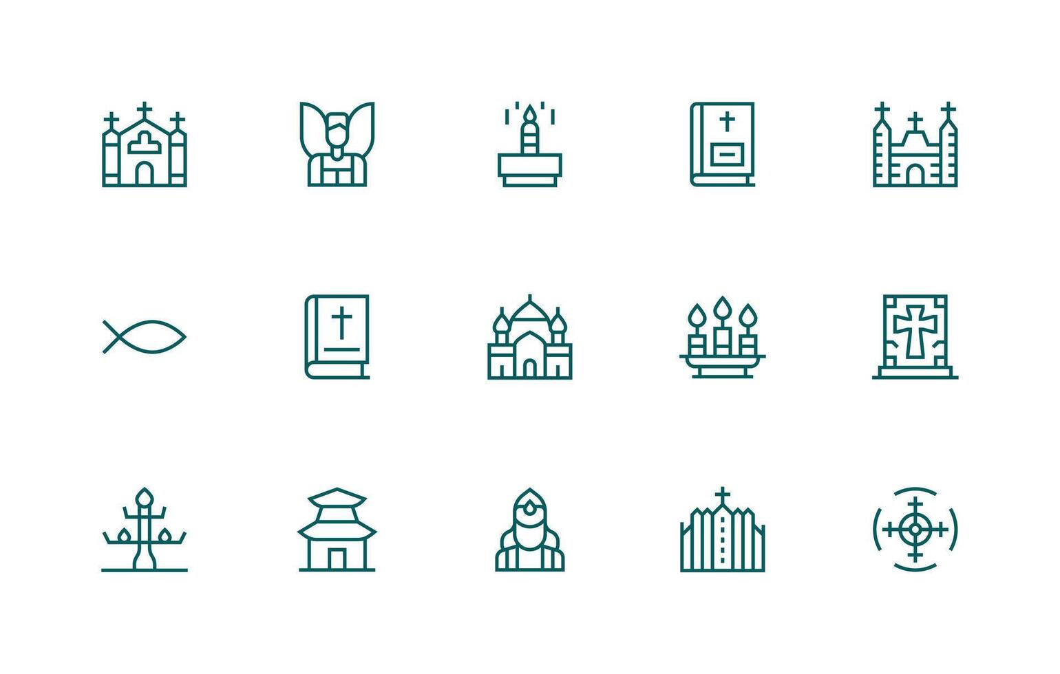 Holy Design Icons featuring 15 in Regular Line Style Interface Icon Collection vector