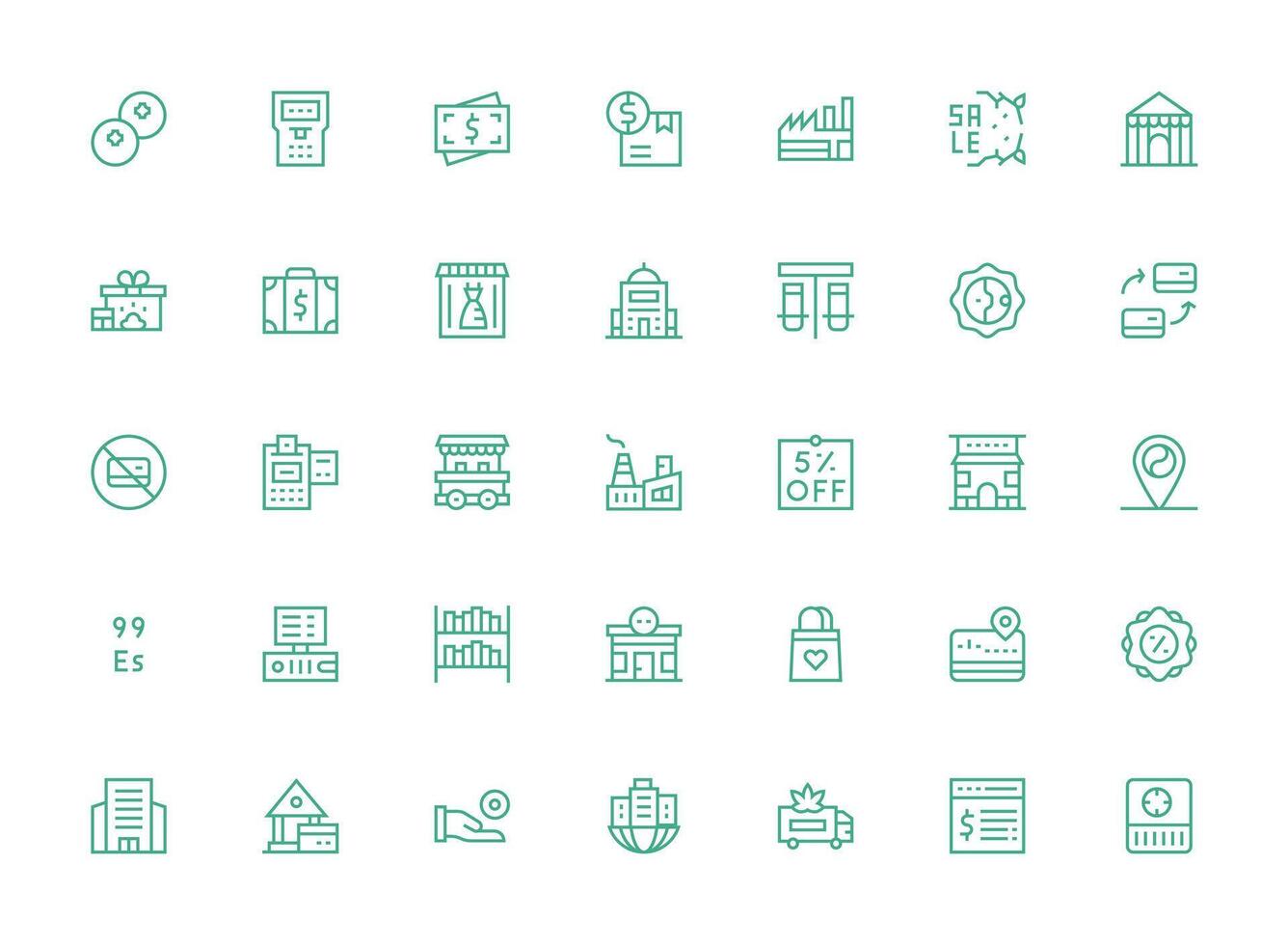 Commerce featuring 35 Icons in Regular Clean Line Design Clean Icon Collection for Web Use vector