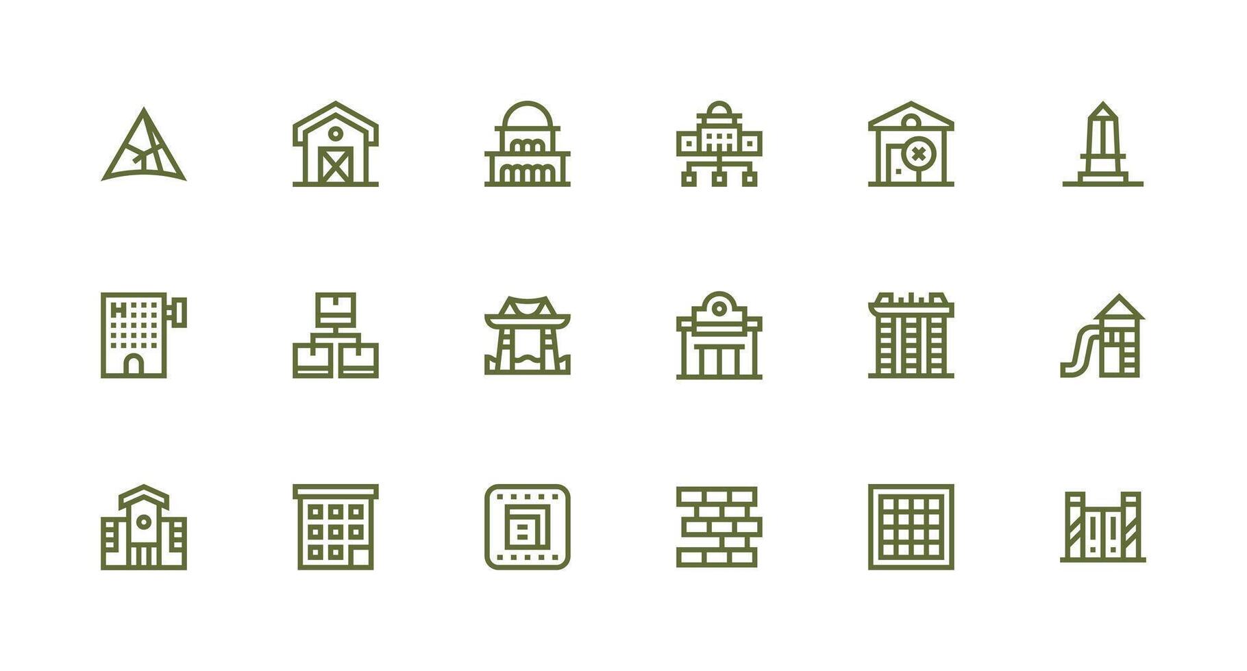 18 Strong Stroke Line Icons for Structure Graphics Editable Icon Collection vector