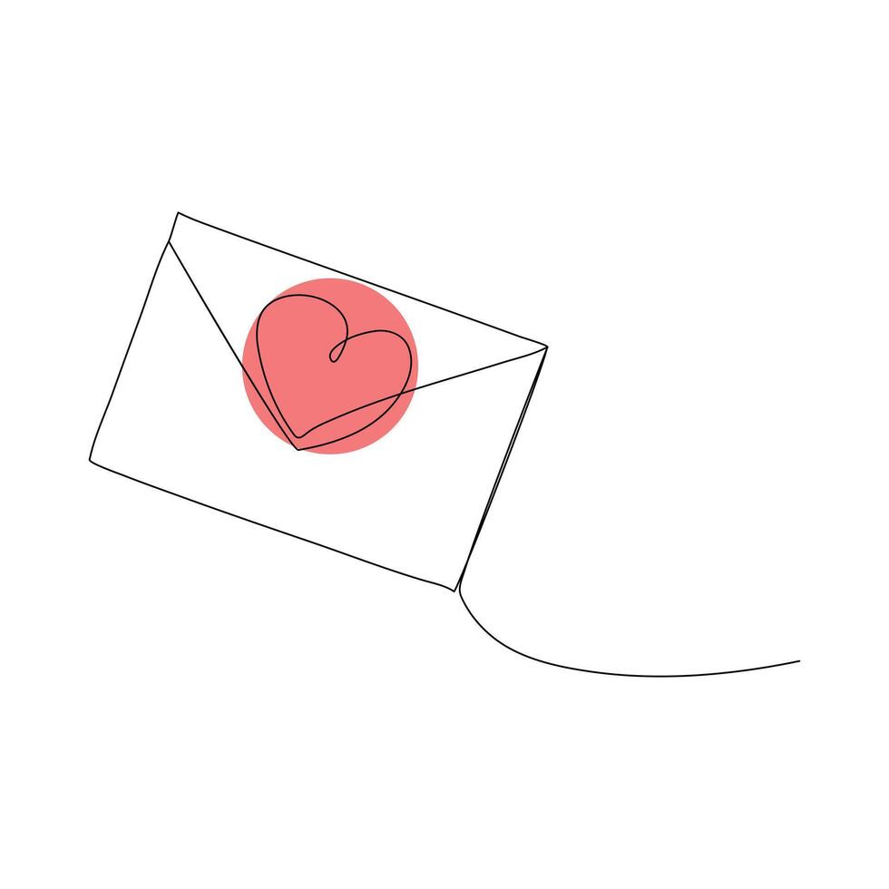 Minimal hand drawn envelope with a heart stamp, One line paper envelope email message post letter send sketch outline drawing illustration design Pro Vector
