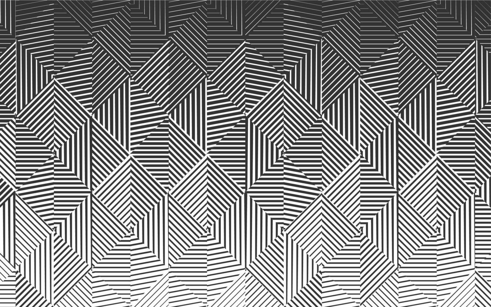 Abstract geometric pattern of interconnected striped shapes. Linear gradient from black to white made by geometric shapes. Pro Vector
