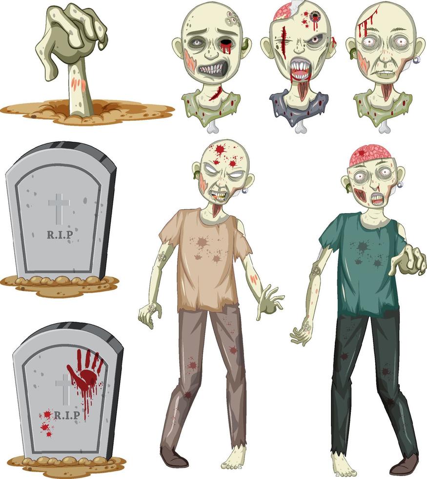 Set of halloween zombie objects Free Vector