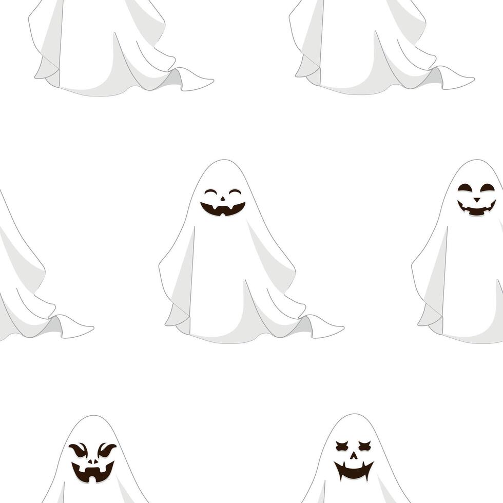 pattern with ghost icons with different spooky and funny faces in flat design. Cute and light style suitable for Halloween, web design, mobile apps, decor and print vector
