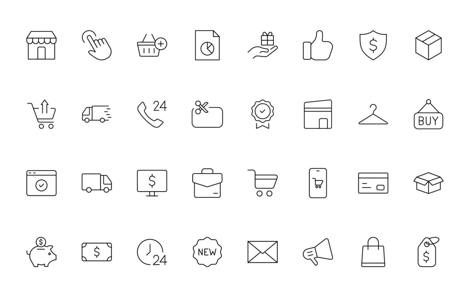 Set of shopping cart icons. Collection of web icons for online store, from various cart icons in various shapes. Shopping simple thin line icon set. Pro Vector