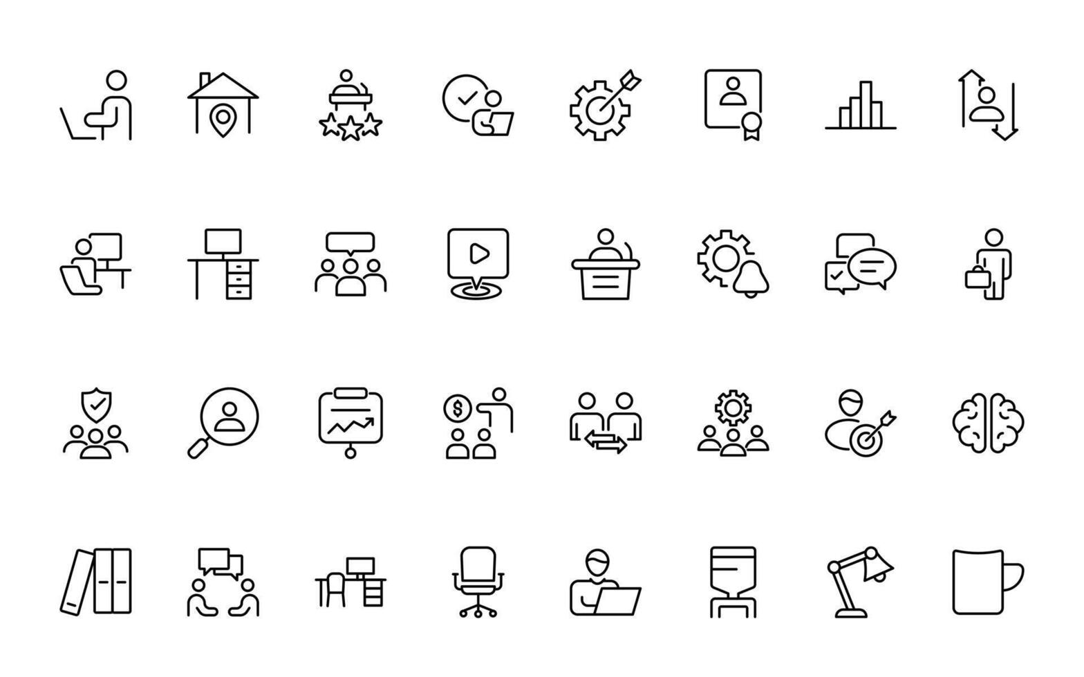 Workshop, Office and workplace related icons. simple minimal editable thin icon set. Pro Vector