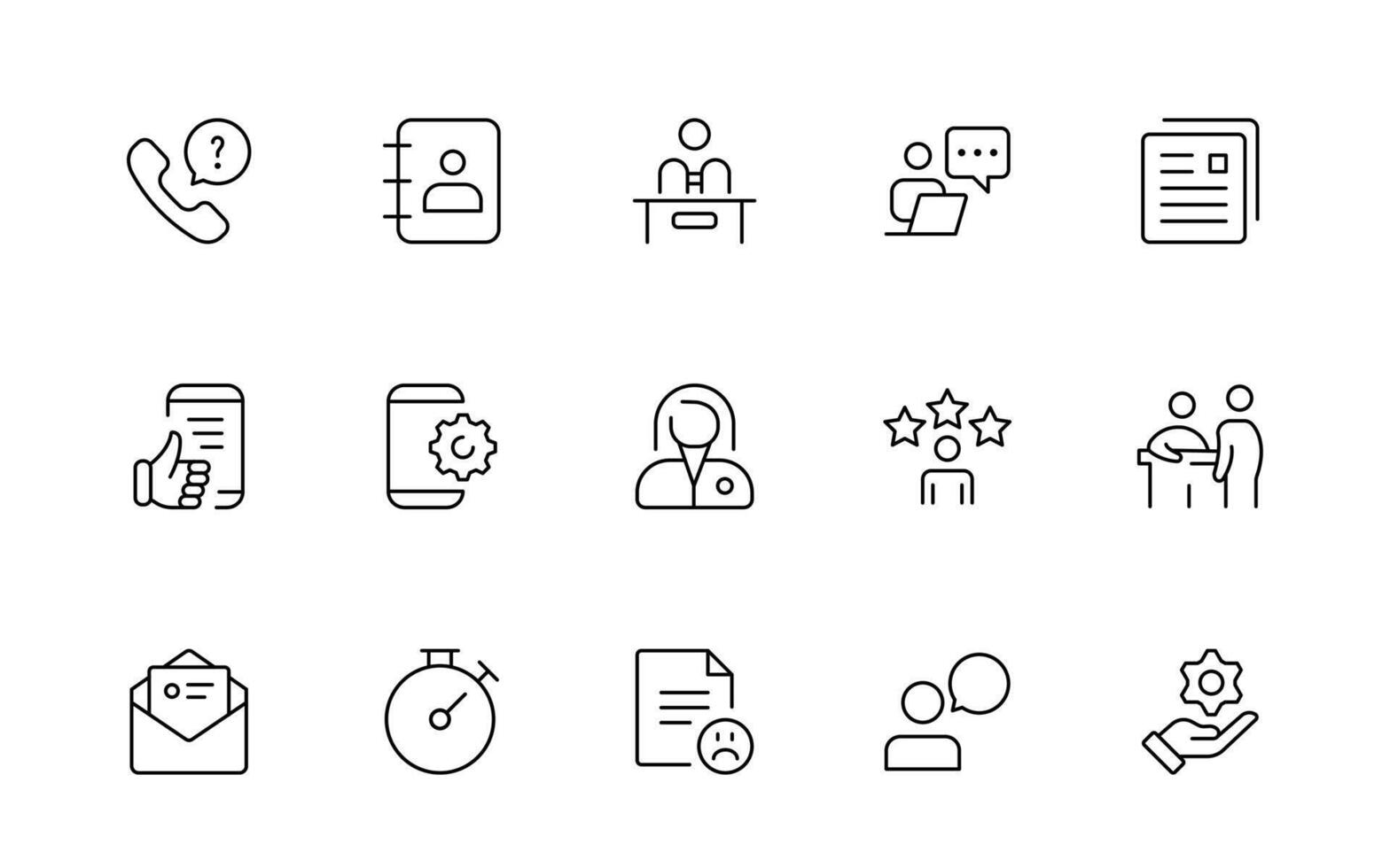 Support and customer or client service style modern icons set. Customer Feedback, Response, experience, helpline and technical support minimal line icon collection. Pro Vector
