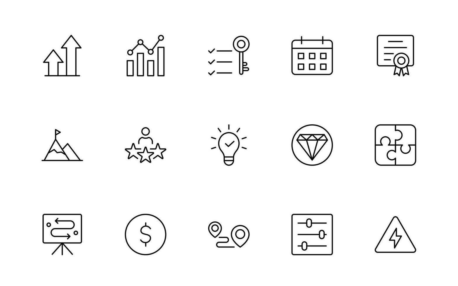 Growth and Success modern line style icons set. Successful business development, plan and process minimal thin line Icon set. Pro Vector