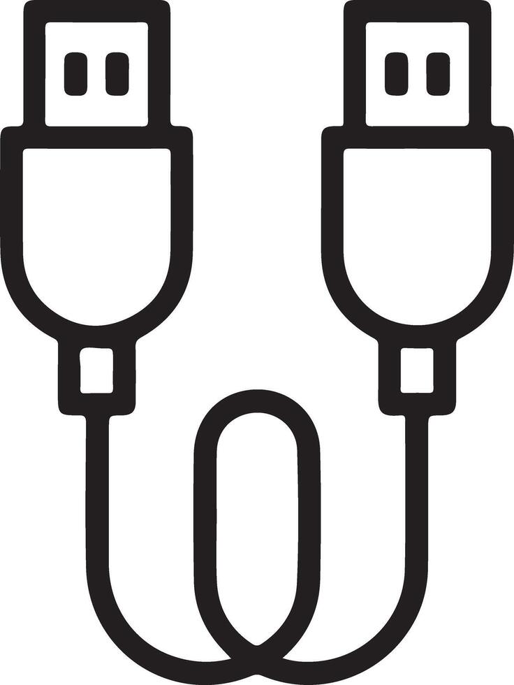Simple black line art icon of two connected usb cables forming a loop on a white background Pro Vector