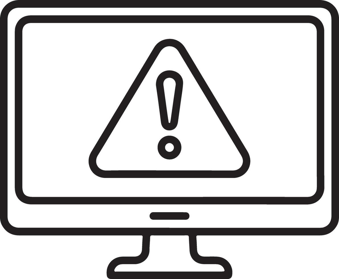 Computer monitor displaying a warning sign with an exclamation mark in a triangle icon Pro Vector