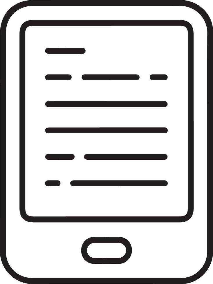 Simple outline icon of an electronic reader device displaying text on its screen Pro Vector