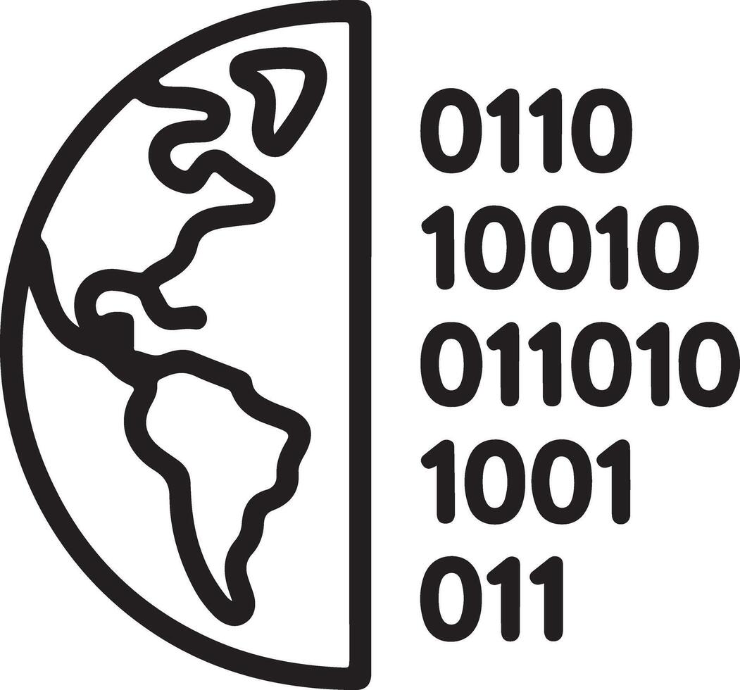 Abstract representation of the earth s hemisphere merging with binary code data stream Pro Vector