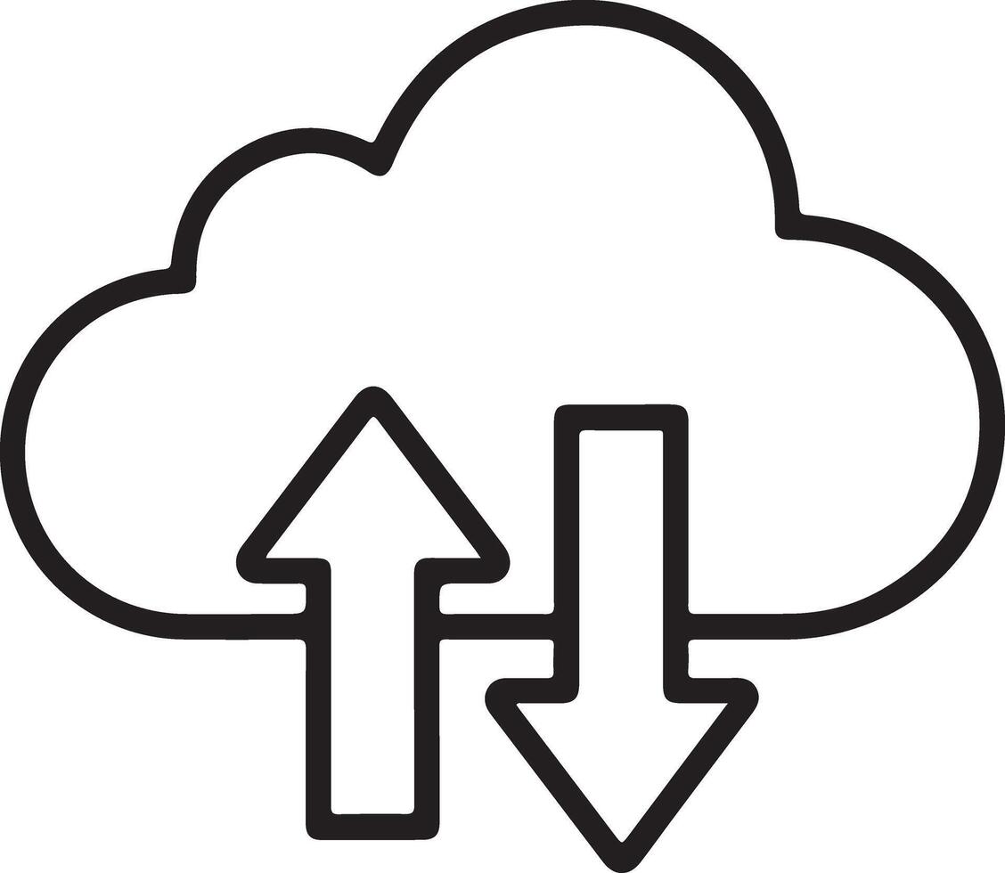 Simple outline icon of a cloud with up and down arrows symbolizing data upload and download Pro Vector