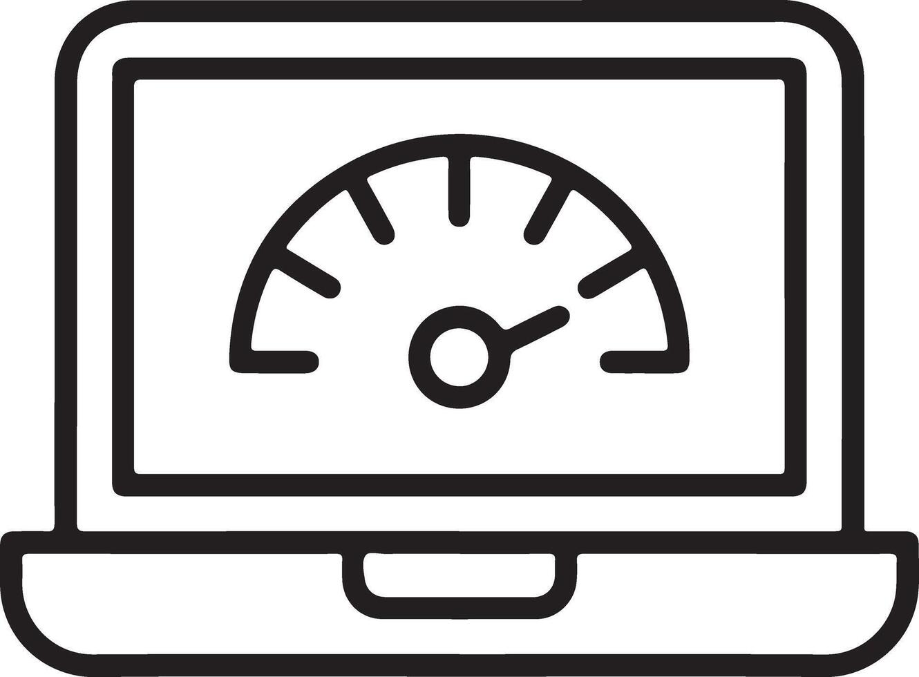 Laptop screen displaying a speed indicator gauge in a simple outline graphic Pro Vector