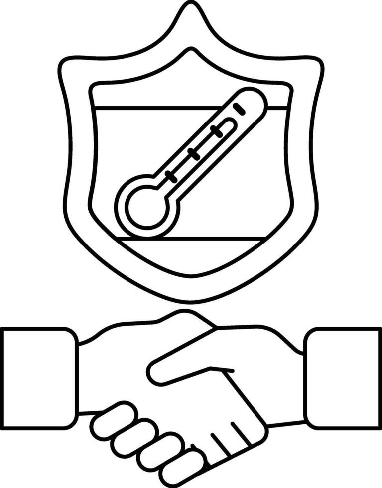 A black and white image of two hands shaking with a thermometer in the middle Pro Vector
