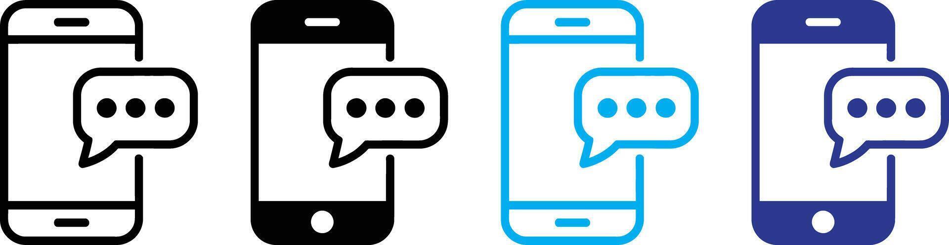 Set of four smartphone icons with speech bubble and dots indicating messaging isolated on white background Pro Vector