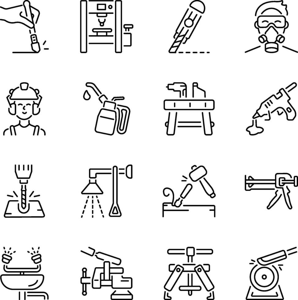 Set of Workshop Tools Line Style Icons . Pro Vector